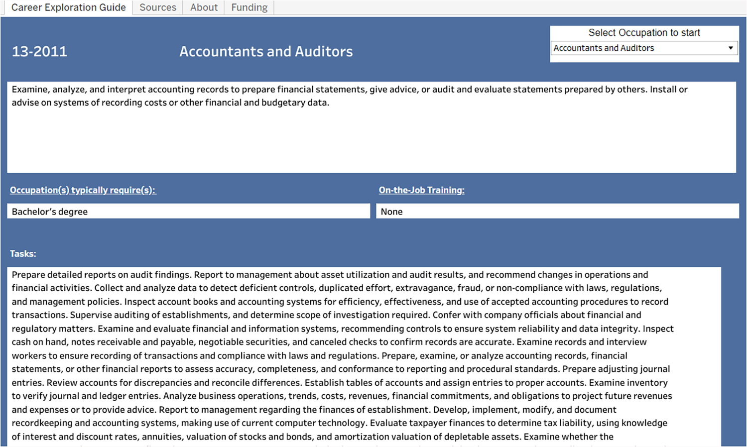 Produced by The United States Department of Workforce that consists of very detailed information on education, working