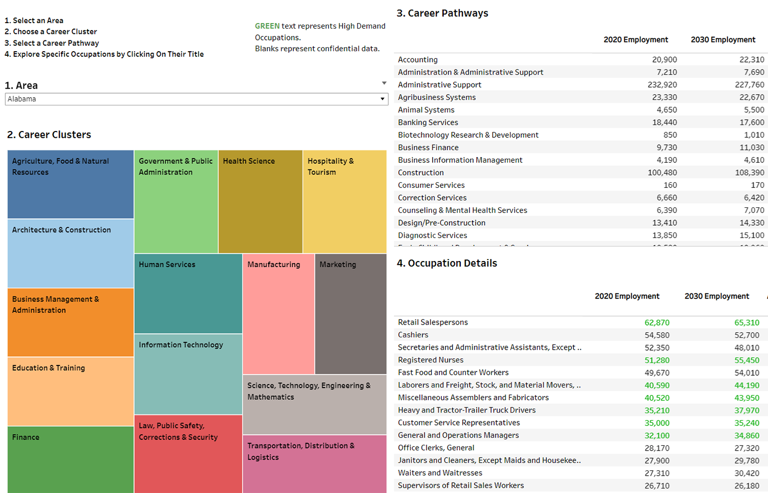 A downloadable version of our Career Exploration Guide, which covers almost 300 occupations in Alabama, is available